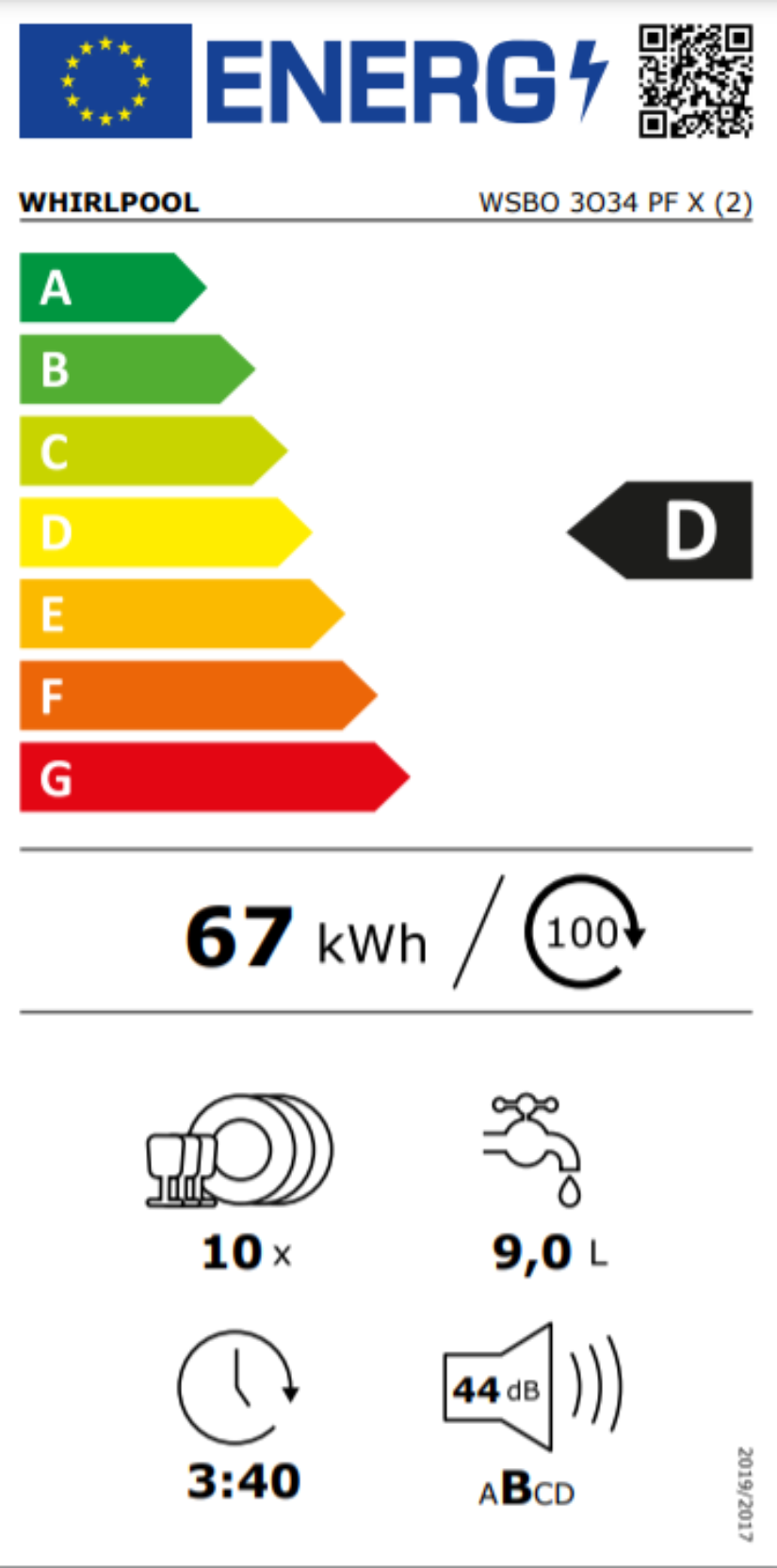 Integrovaná myčka nádobí s přiznaným panelem WSBO 3O34 PF X v energetické třídě D technologie 6.SMYSL, šířka 45 cm, příborová zásuvka programy: senzorový program, studený před ...Více informací