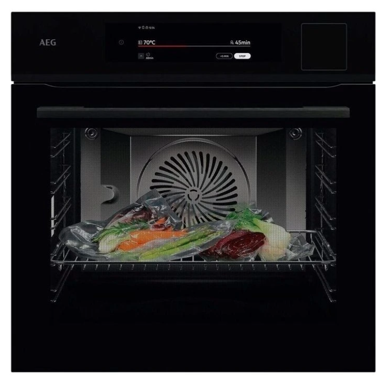 Středně propečený steak, dušená zelenina nebo ryba? Ať je recept jakýkoli, trouba 9000 ProAssist s funkcí SteamPro zajistí dotykem tlačítka perfektní výsledky. Ohřívání na páře osvěží zbytky a zachová 90 % vitamínu C – to vše při nižší spotřebě energie. Externí test provedený na brokolici a lososu dokazuje uchování výživných látek po pečení na páře při nízké teplotě.