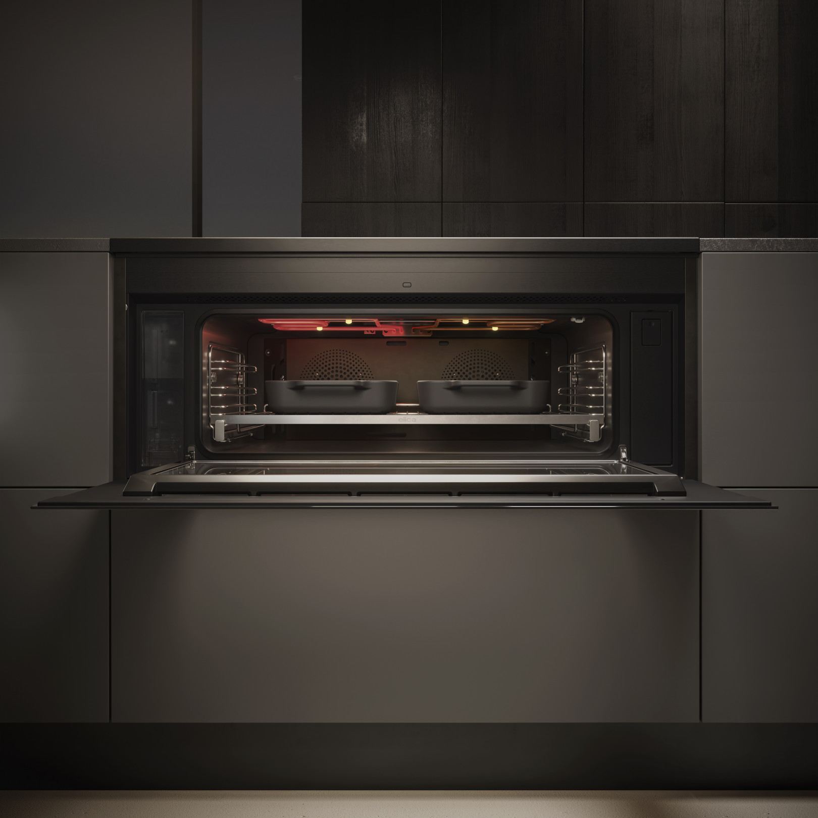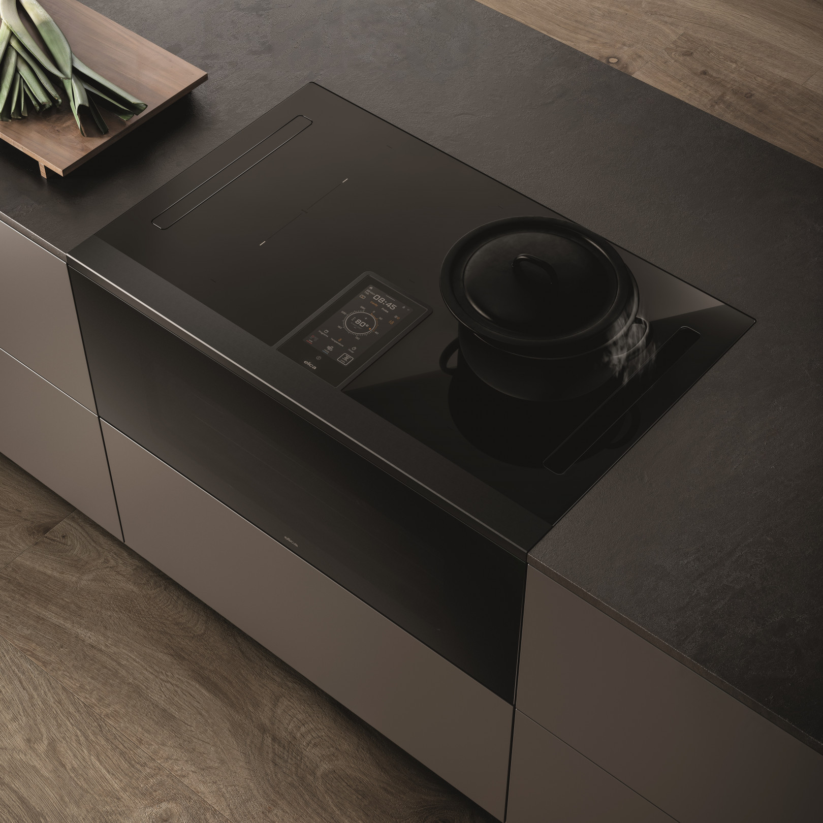 LHOV v sobě kombinuje bezkonkurenční estetiku a výkon. Jeho super lineární design s černým sklem dokonale zapadá do kuchyňské linky, šetří prostor a dodává kuchyni čisté linie. Tento all-in-one spotřebič nabízí inovativní funkce, různé metody a zóny vaření, a je vybaven pokročilým dotykovým TFT displejem, který poskytuje jednoduché ovládání všech tří spotřebičů.
