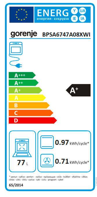 Spotřeba energie plynové trouby na jeden cyklus v konvenčním režimu (2010/30/ES) 0,0 Mj