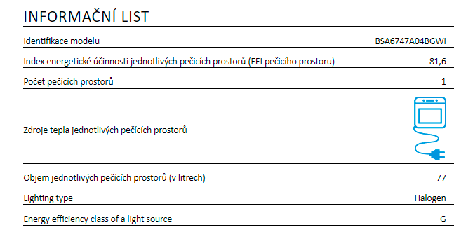 Informace energetické nálepky / Vlastnosti :