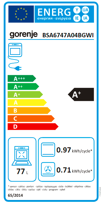 Produktová skupina Vestavná trouba Značka výrobce GORENJE Model BSA6747A04BGWI Art. nb. (artiklové číslo) 739568 EAN kód 3838782557620 Základní barva výrobku Černá Jet Konstru ...Více informací