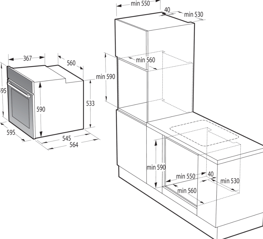 Minimální výška otvoru pro vestavění (mm) 590 mm
