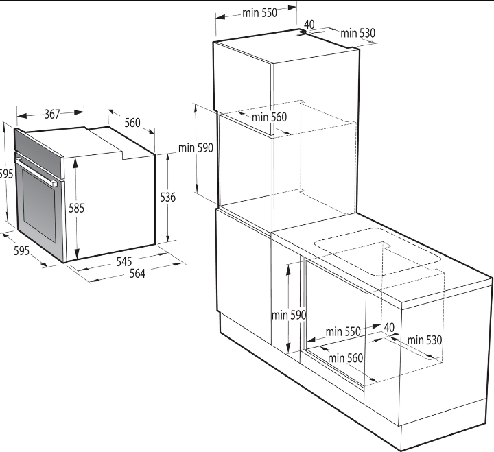 Typ konstrukce: Vestavný typ, Šířka spotřebiče: 595 mm, Výška spotřebiče: 595 mm, Třída energetické účinnosti: A+, ICON LED+