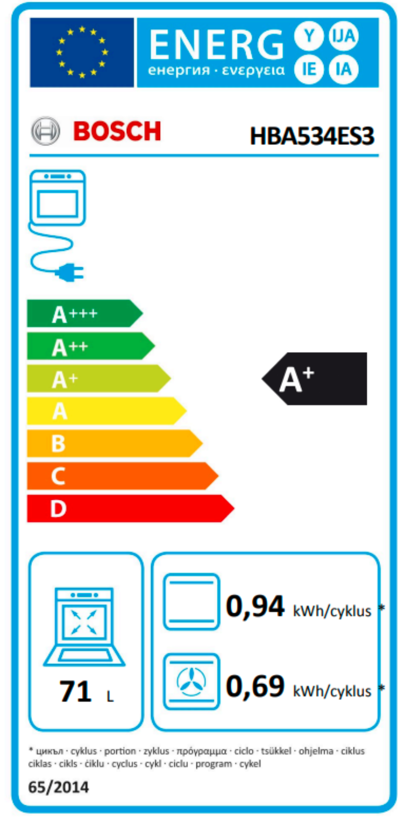spotřeba energie na cyklus při konvenčním ohřevu:0.9 kWh(na stupnici třidy energetické účinnosti od A+++ do D)