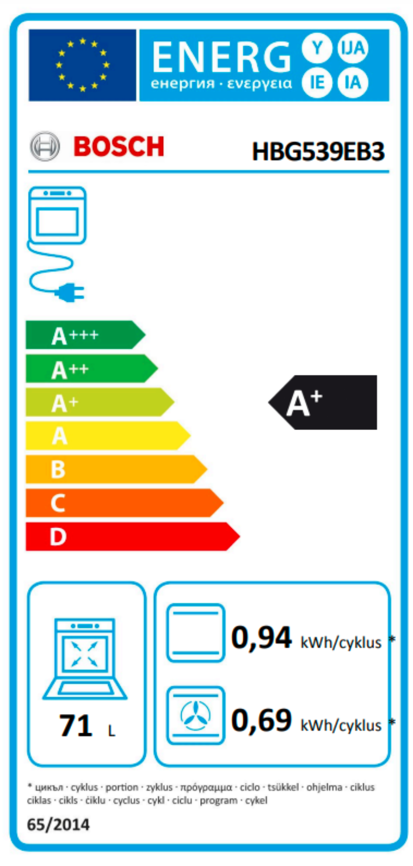 spotřeba energie na cyklus při konvenčním ohřevu:0.9 kWh(na stupnici třidy energetické účinnosti od A+++ do D)