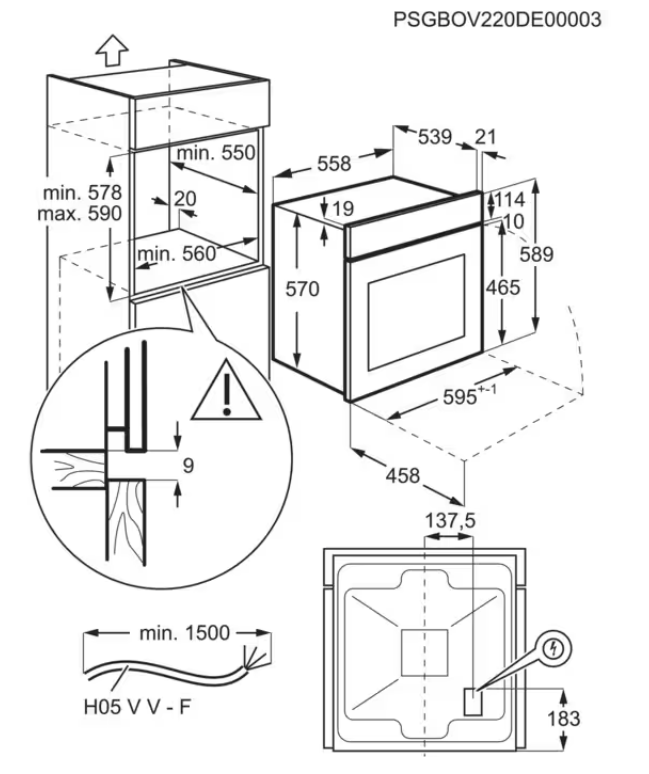 Prostor pro instalaci VxŠxH (mm): 593x560x550