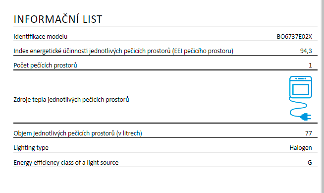 Spotřeba energie (nucená konvekce vzduchu)        0,82 kWh