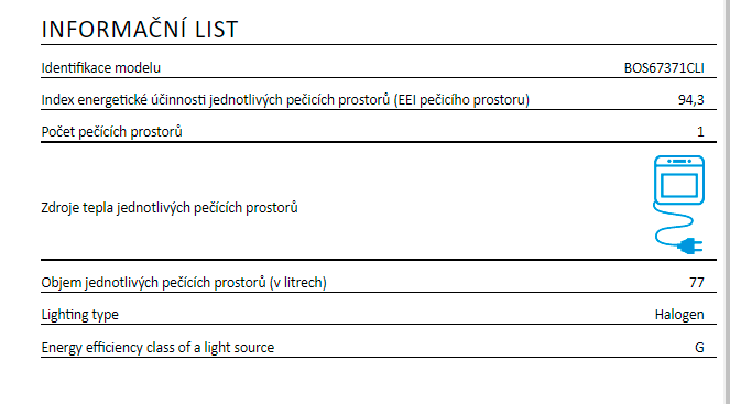 Spotřeba energie (nucená konvekce vzduchu) 0,82 kWh