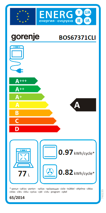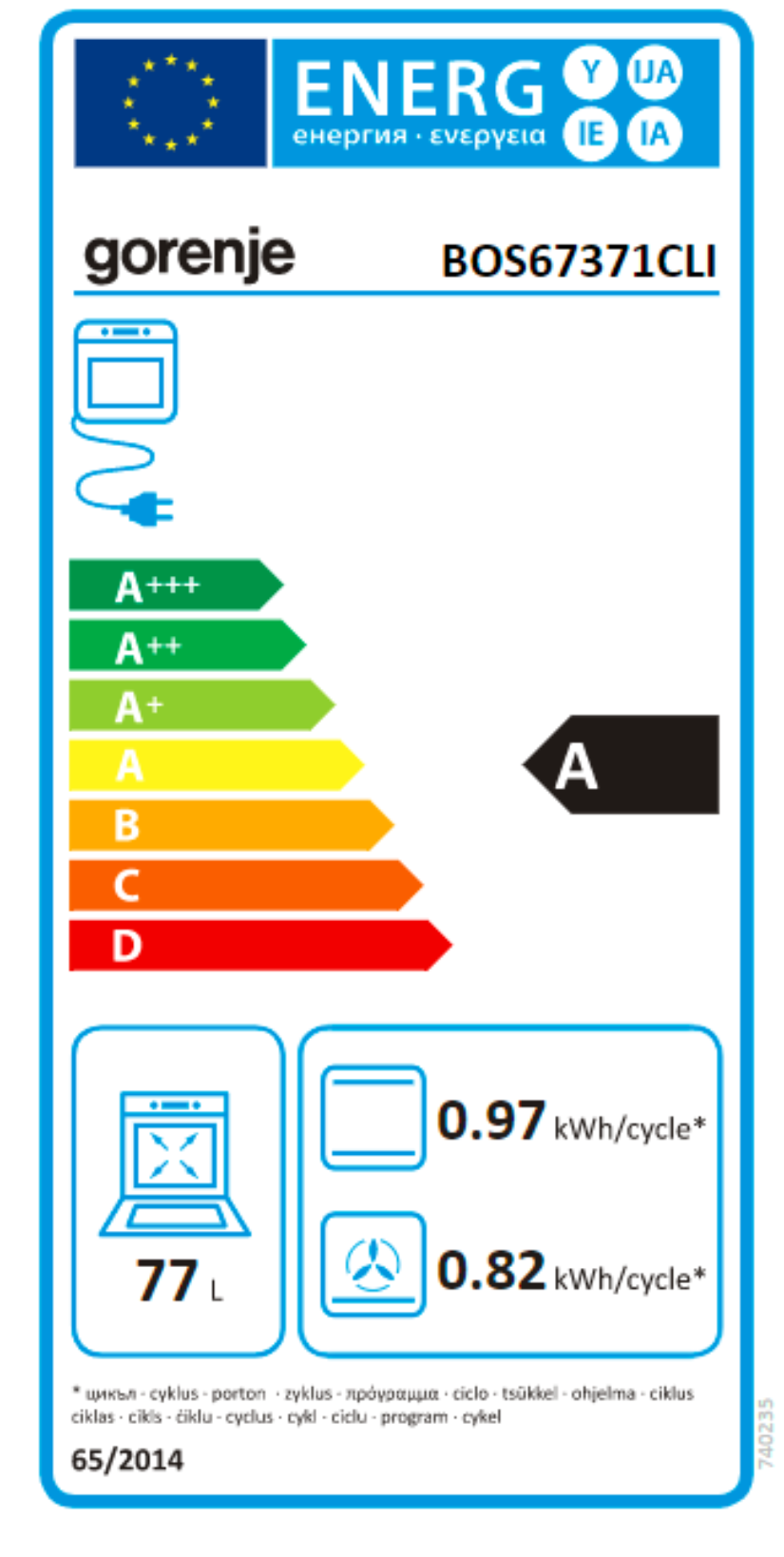 Spotřeba elektrické energie na jeden cyklus v režimu ventilátorové nucené konvekce (2010/30 / ES) 0,82 kWh/cycle