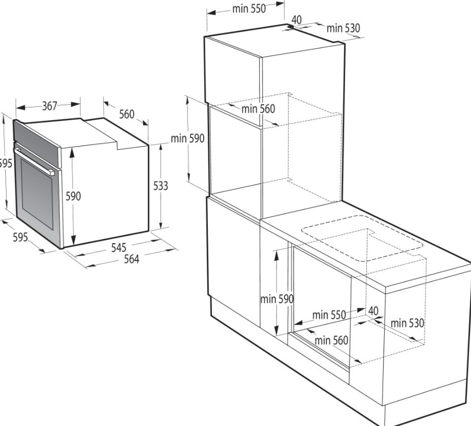 Minimální výška otvoru pro vestavění (mm) 590 mm