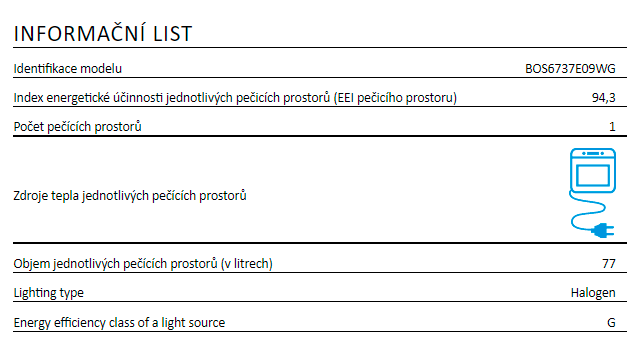 Spotřeba energie (nucená konvekce vzduchu)        0,82 kWh