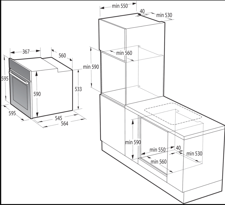 Minimální výška otvoru pro vestavění (mm)        590 mm