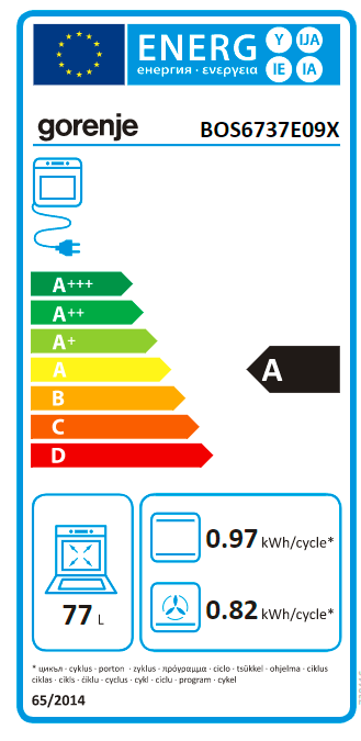 Spotřeba elektrické energie na jeden cyklus v režimu ventilátorové nucené konvekce (2010/30 / ES) 0,82 kWh/cycle