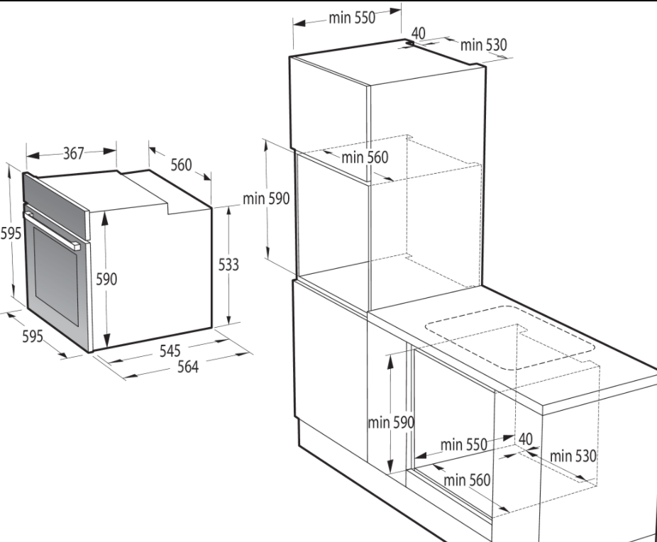 Minimální šířka otvoru pro vestavění (mm) 560 mm