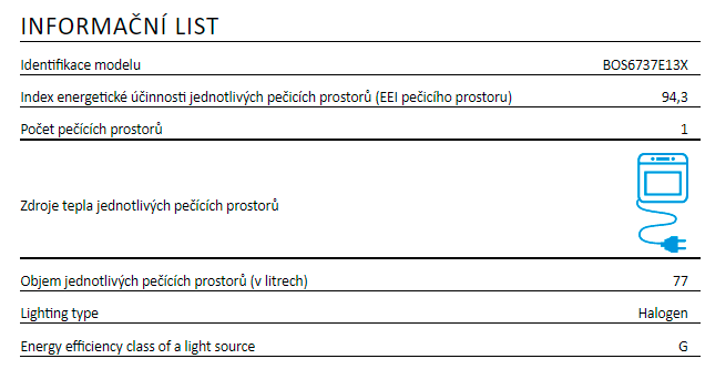 Spotřeba energie (nucená konvekce vzduchu) 0,82 kWh