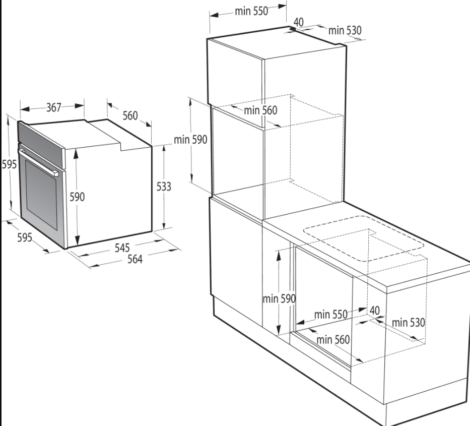 Minimální výška otvoru pro vestavění (mm) 590 mm