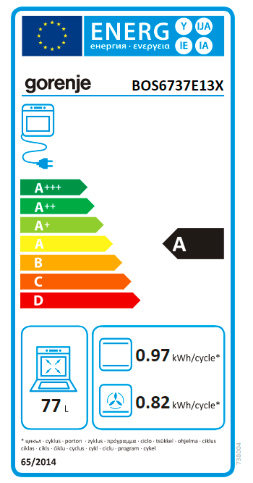 Spotřeba elektrické energie na jeden cyklus v režimu ventilátorové nucené konvekce (2010/30 / ES) 0,82 kWh/cycle