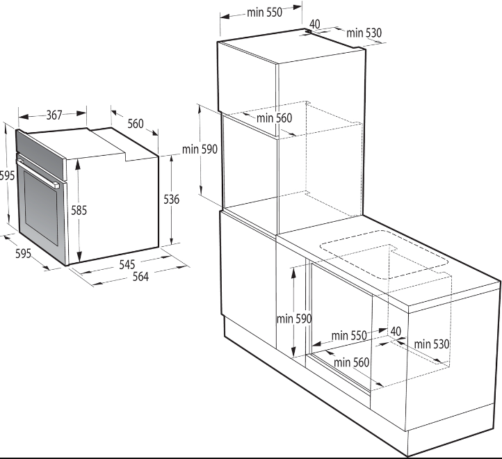 Typ konstrukce: Vestavný typ, Šířka spotřebiče: 595 mm, Výška spotřebiče: 595 mm, Třída energetické účinnosti: A, IconLed