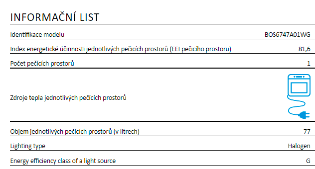 Informace energetické nálepky / Vlastnosti :