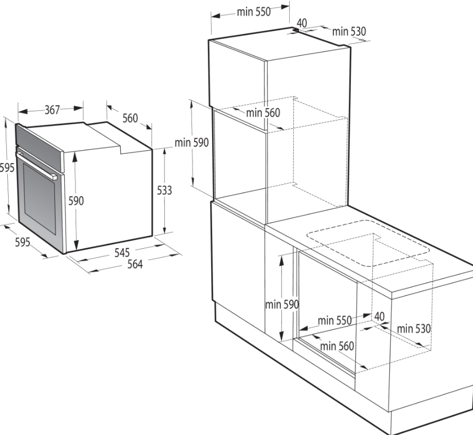 Minimální výška otvoru pro vestavění (mm) 590 mm