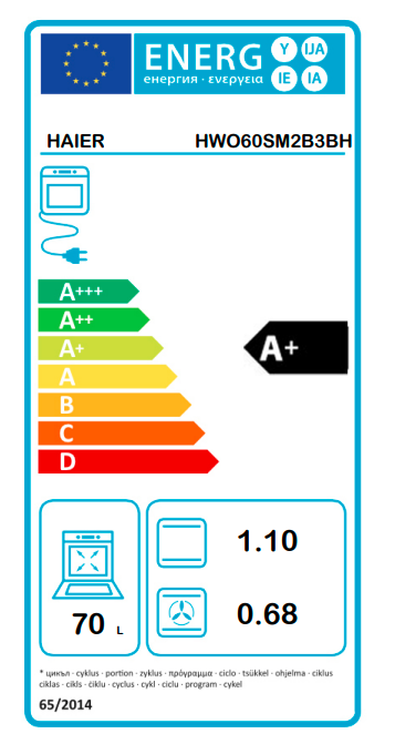 Horkovzdušná, 70 litrů, Hydrolytický, 9 funkcí, Pokročilé dálkové ovládání (Wi-Fi + BLE), Třída A+, Černá, S x H x V (mm) 595X595X568