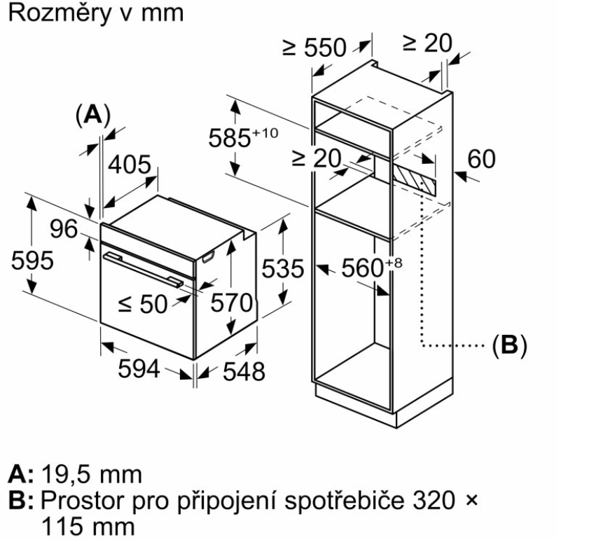 rozměry niky (V x Š x H): 585 mm - 595 mm x 560 mm - 568 mm x 550 mm