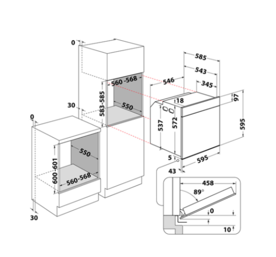 Rozměry otvoru pro zabudování (vxšxh) 600x560x550 mm