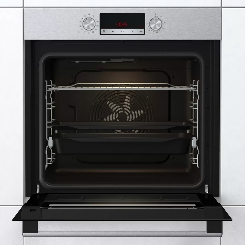 Tato elektrická trouba v bytelném nerez provedení vám kromě tradičního pečení otevře dveře k dalším moderním tepelným úpravám pokrmu. Disponuje funkcí páry, kterou ocení především příznivci zdravé výživy. Připravíte s ní jídla rychle a šetrně, takže si zachovají maximum vitamínů a stopových prvků. Navíc vás překvapí výtečná chuť a přirozená konzistence výsledných jídel. Pokud si rádi pochutnáváte na hranolkách nebo kuřecích nugetách, ale nedopřáváte si je tak často kvůli vysoké kalorické hodnotě, můžete také zkusit program pro horkovzdušné fritování bez tuku. Dále je trouba vybavená 12 pečicími programy, které jsou navržené přesně podle potřeb konkrétních jídel. Vykouzlíte například výbornou pizzu jako z italské restaurace (program Pizza 300 °C), pomalu upečete pečínku, a efektivně rozmrazíte hotové porce jídla. Teleskopický rošt zabezpečí snadnější a bezpečnější manipulaci s nádobím, zatímco tiché zavírání a otevírání dvířek přinese komfort při každodenním provozu. Klenutý vnitřní prostor trouby je inspirovaný tradičním tvarem kamenné pece. Chytře rozmístěná topná tělesa a extra velký objem 77 l zaručují dokonale propečené a křupavé jídlo ze všech stran. Trouba vás zaujme jistě také variabilním rozpětím teploty od 50 do 300 °C. Perfektní vyčištění párou zajistí funkce ECO CLEAN, díky které odstraníte i větší nečistoty bez nutnosti použít čisticí prostředek. Trouba spadá do ekologické třídy A.