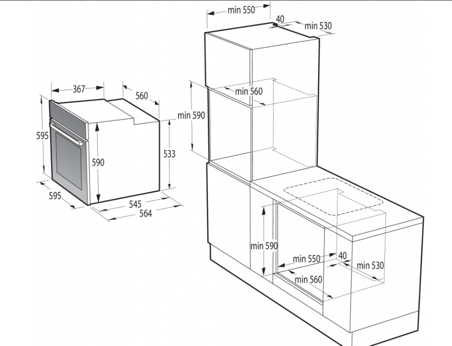 Výška pro vestavbu cm 59