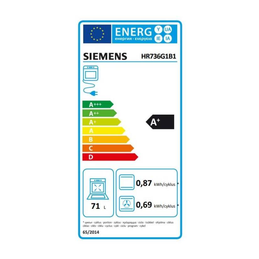 spotřeba energie na cyklus při konvenčním ohřevu: 0.87 kWh(na stupnici třidy energetické účinnosti od A+++ do D)