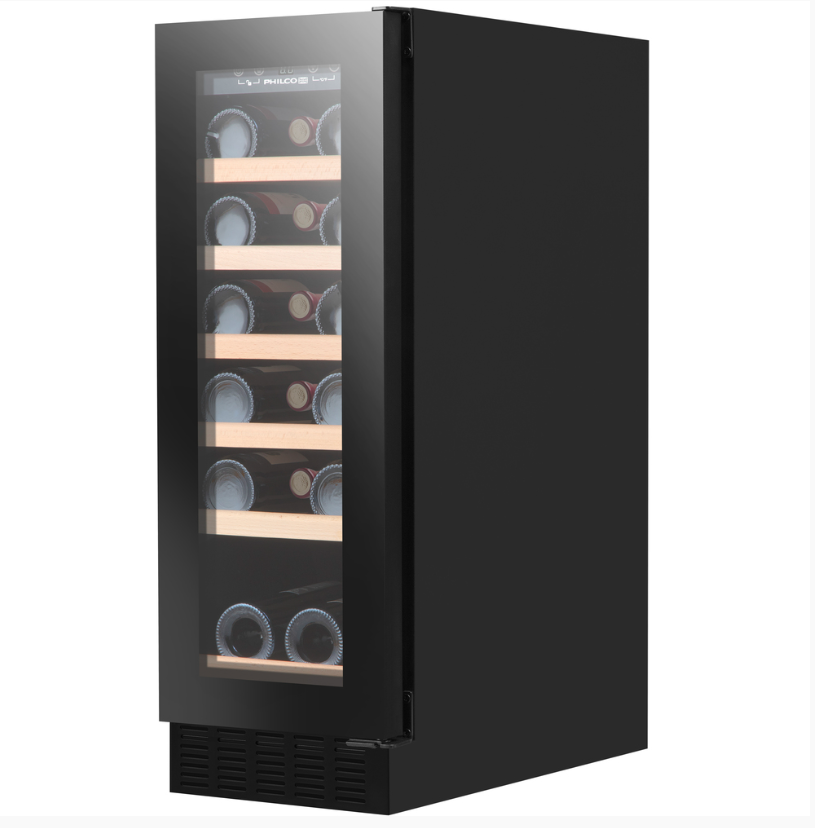 Jednozónová, kompresorová, senzorově ovládaná, vinotéka Philco PW 19 GFB na 19 lahví s kluznými výsuvnými policemi s bukového dřeva. Vinotéka je opatřena trojitým sklem dveří ...Více informací