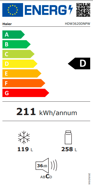 Výběr chladničky třídy D od společnosti Haier znamená úsporu energie, zvýšení efektivity výkonu a ohleduplnost k životnímu prostředí. Snížení spotřeby energie o 36 % v porovnání třídou F.