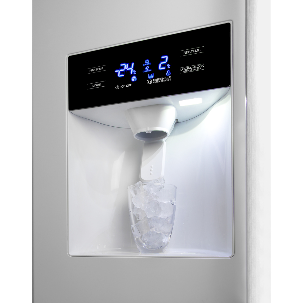 Americká chladnička Vlastnosti: NoFrost Invertorový kompresor SuperFreeze SuperCool Multi Air Flow LED osvětlení Holiday Displej Alarm Automatický výrobník ledu, výdejník ledu ...Více informací