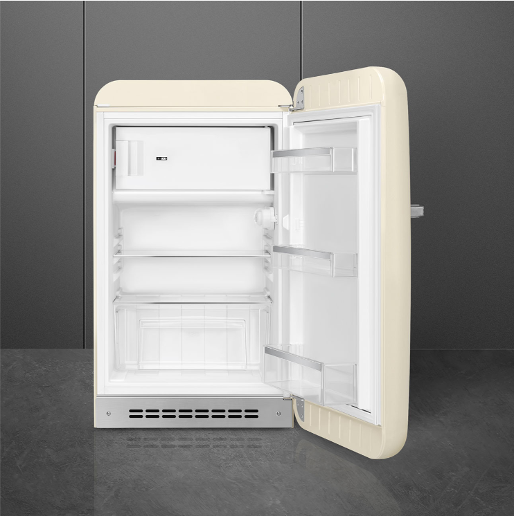 Model FAB10 byl vytvořen, aby vyhovoval potřebám moderních stylů zařízení: S výškou pouhý 1 metr a šířkou 54 cm je idální pro malé kuchyně nebo kanceláře. Navzdory svým malým rozměrům nabízí FAB10 všechny funkce, které byste od chladničky FAB značky Smeg očekávali: Má nízkou spotřebu energie a s hlučností pouhýcz 37 dB(A) je tento spotřebič téměř neslyšitelný - ideální pro malé domácnosti nebo kanceláře.