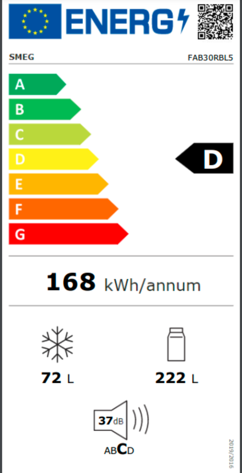 Sum of the volumes of the chill compartment(s) and the unfrozen compartment(s): 222 l