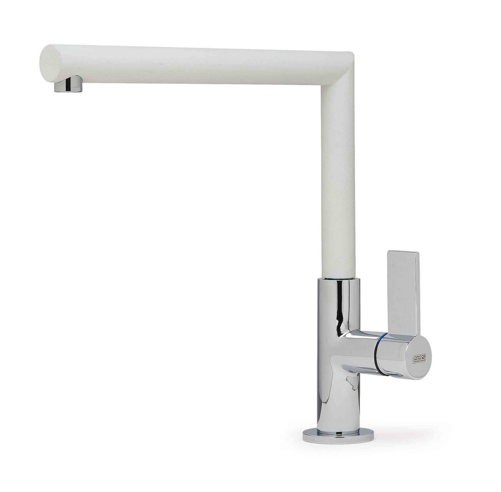 Dřezová páková baterie ELLECI ARES V96 Otočná o 360 st. Rozměry: 270x230 mm Průměr 35 mm Provedení: V96 (White) BARVA: BÍLÁ ROZMĚR: 270 X 230 MM